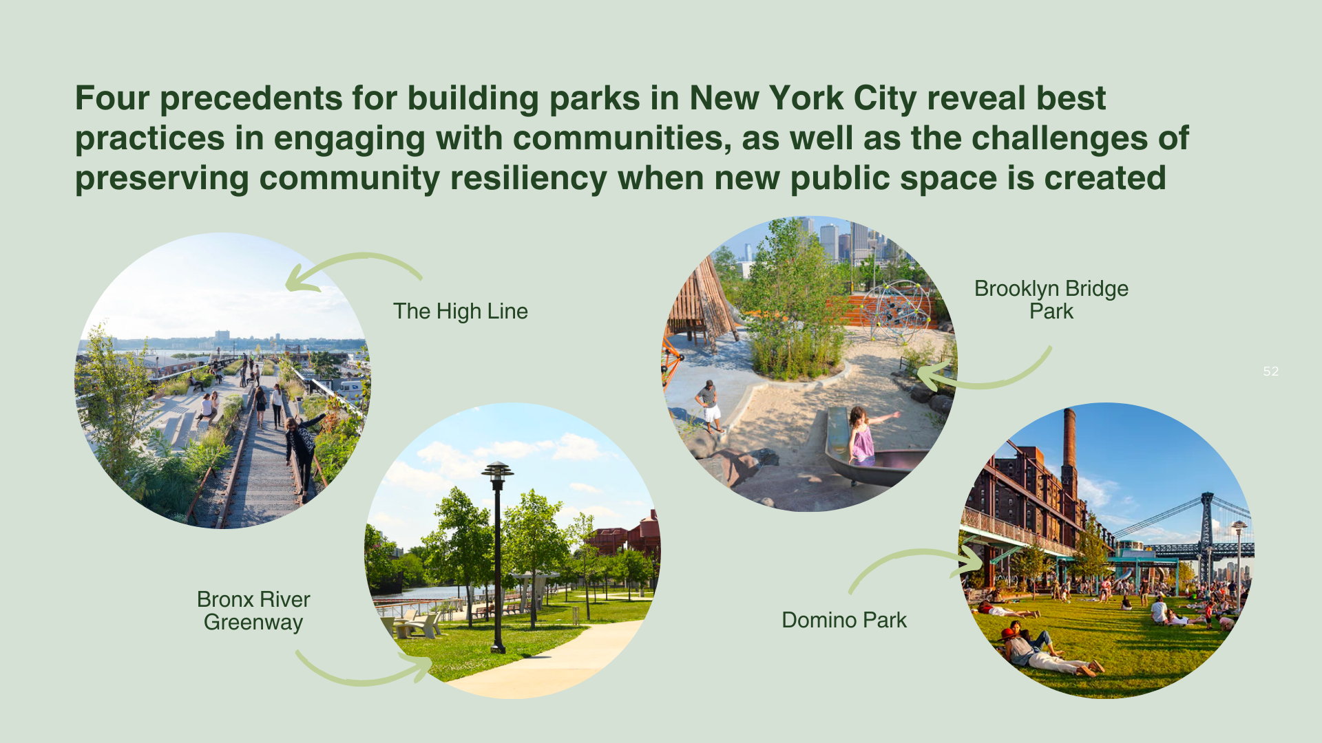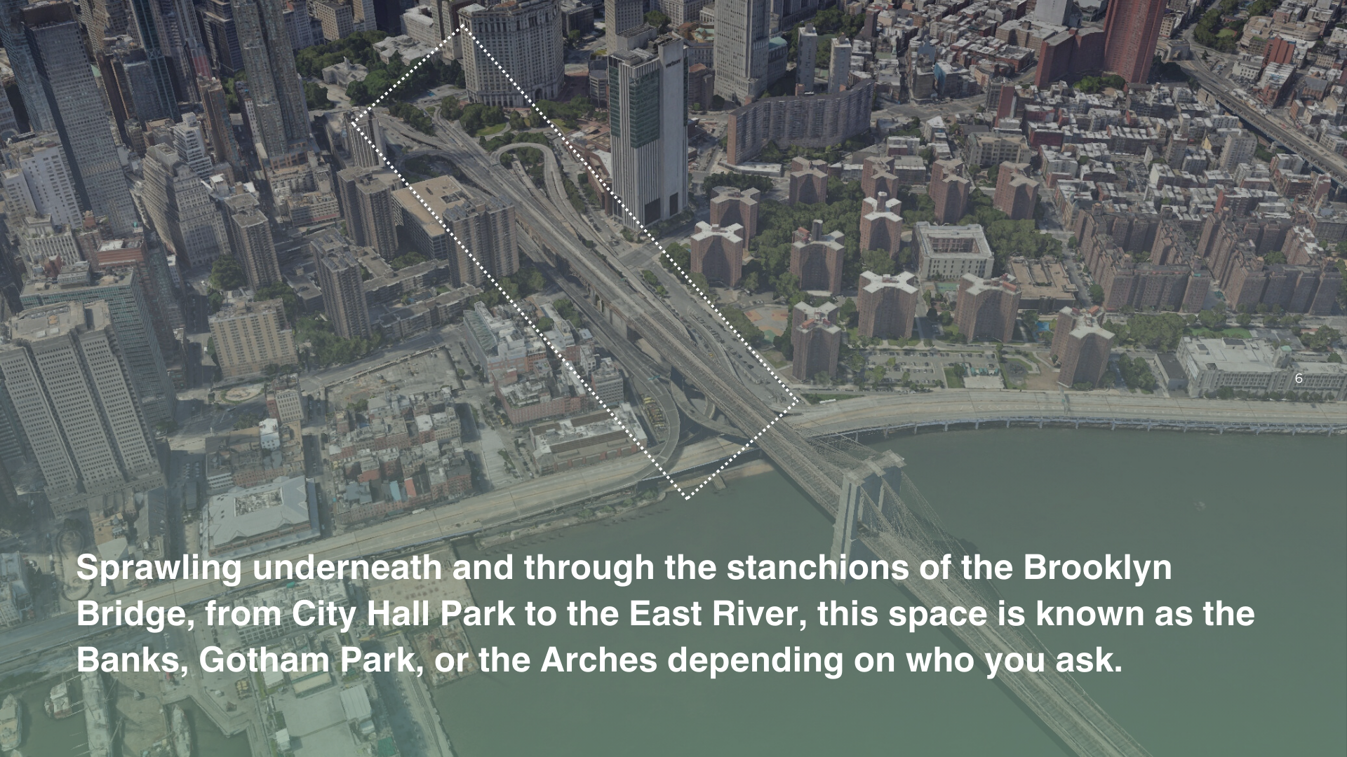 To support Gotham Park’s future phases of fundraising, development, and engagement, this project details the stories of the Brooklyn Bridge and the Arches and the people who care about these spaces. It also outlines a community needs assessment playbook to guide future engagement, informed by research, site visits, and interviews with community members and leaders.